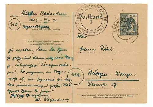 Carte postale Siegen vers Berlin, timbre postal 1946