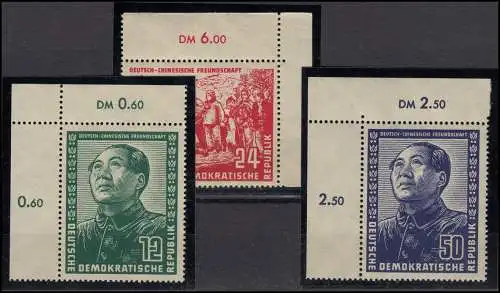 286-288 amitié franco-chinoise 1951, 3 valeurs, phrase **