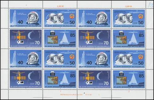 3005-3008 Weltraumflug 1986, ZD-Bogen, FN6 ESST Berlin