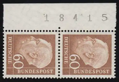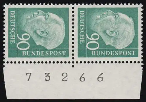 179a DZ Heuss 5 Pf lumogène Paire de bordures de caractères d'imprimante D Z 7 positif, non..