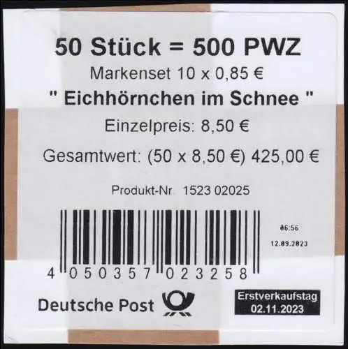 AWO/ Wofa 1992 100 Pf, 5x1634, frais de port