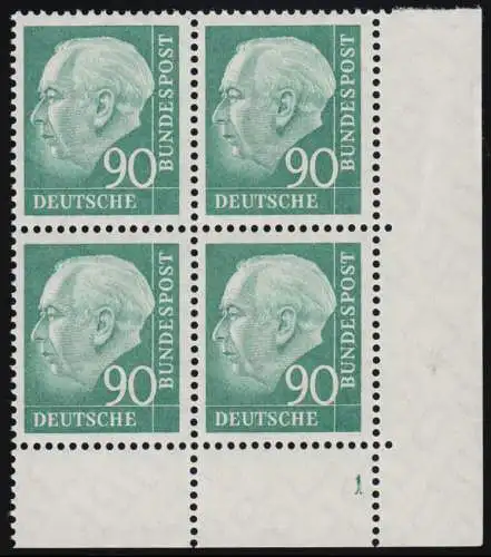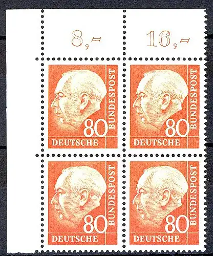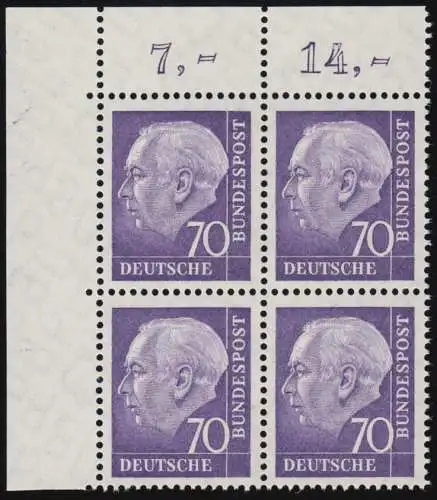 302-306 Heuss 5 Werte, ER-Viererblock o.l., Satz postfrisch **