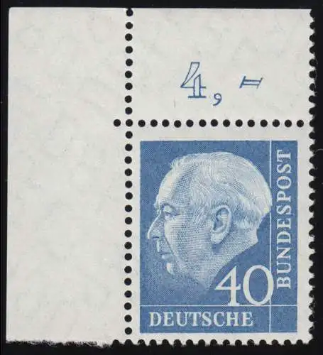 188 Heuss 40 Pf. Édition expérimentale, marque unique **, double-essai Schmidl BPP