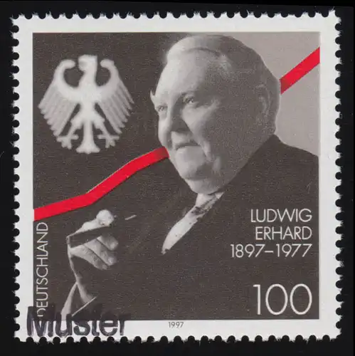 1308I Ludwig Erhard ** Coin et r. avec PLF I Point à côté des nœuds de cravate