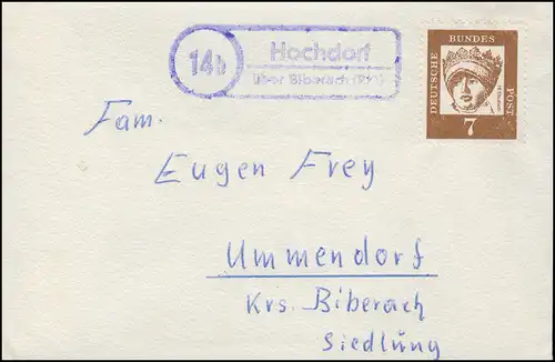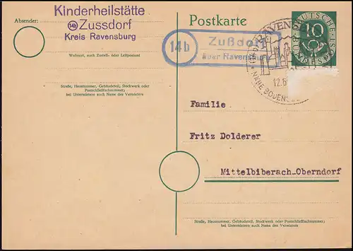 Brief mit Landpost -Stempel 13b Anhausen über Augsburg, 29.4.54