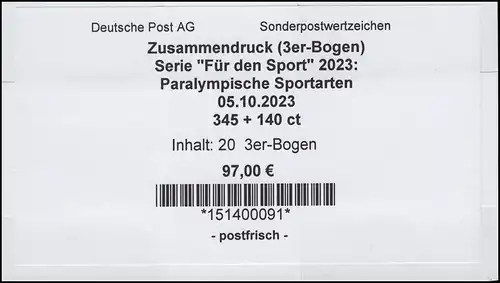 2517ff aus Block 67 Fußball-Weltmeisterschaft 2006, 3 Zusammendrucke, Set ESSt