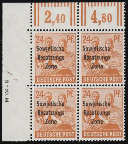 240 Leipziger Messe 1949 - Eckrand-Viererblock oben rechts, ungefaltet **