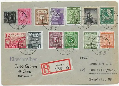 42-50A Ziffernserie, 9 Werte komplett auf Umschlag Bärenstein Heidenau 16.10.45