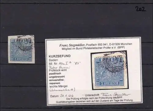 Baden: MiNr. 19ab, BPP Attest, marque tamponnée