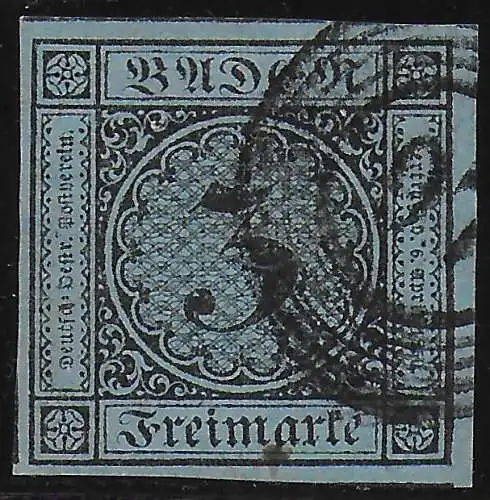 Baden: MiNr. 22a, cacheté Fribourg, BPP résultat