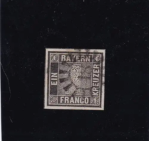 Bavière: MiNr. 1 Ia noir, plaque 1, cacheté Nuremberg, BPP Attest