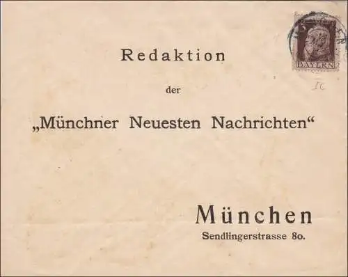 Bavière: Ludwig III, MiNr. 107 IU, Eckrand, Number de plaque, Postfraîchissement, BPP