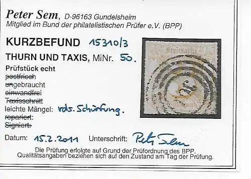 Thurn & Taxis: MiNr. 6a, cacheté GRIZ, BPP résultat