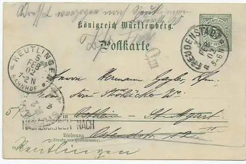 Wurtemberg Streifband comme impression Le timbre ESSLINGEN-BAHNHOF 14.3.1895