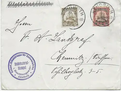 DSWA 1912: utilisation tardive du cachet Windhuk à la Poste de Leipzig