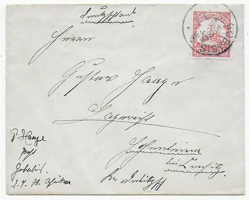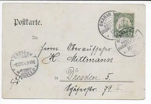 DSWA 1906: AK Aire de la Woermann-Dampfer; Feldpost de Hambourg à Dessau