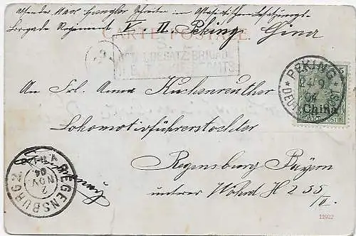 Dt. Post en Chine 1901 R-Courrier avec 8 télégrammes de terrain vapeur Palatia rare
