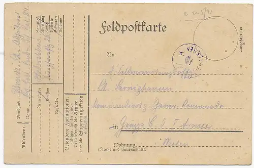 K.D. Poste de terrain 1918, Königl. Sächs. Landwehr Infanterie Régiment n° 103, carte