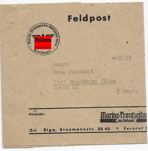 Envoi mensuel gratuit de colis 1940 Poste de campagne No 09577 vers Bernburg