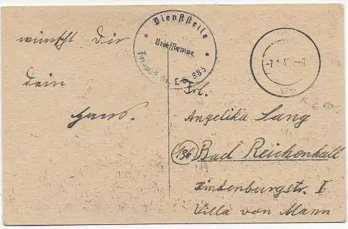 1915: Carte de vue du FP Baalbeck, ministère des Affaires étrangères à Berlin après Berlin