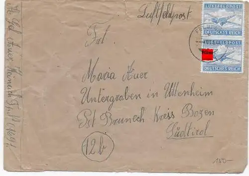 Poste de terrain II. Guerre mondiale: Kempten Lettre au FPn. 5603, 1944, Hongrie Front