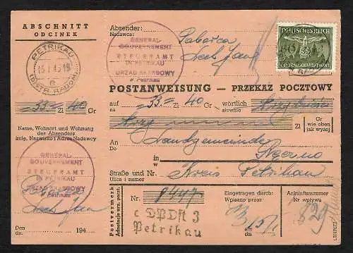 GG: Carte de contrôle des communications internationales Cracovie, 1944