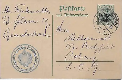 Inscription 1916 Varsovie - Bes. I. WK à Berlin, censure, zelocean