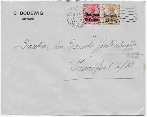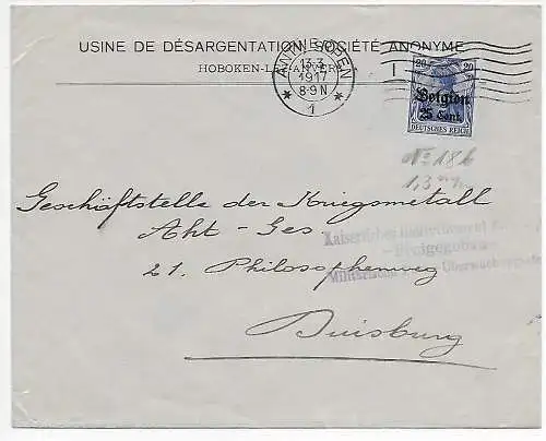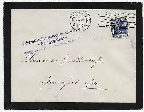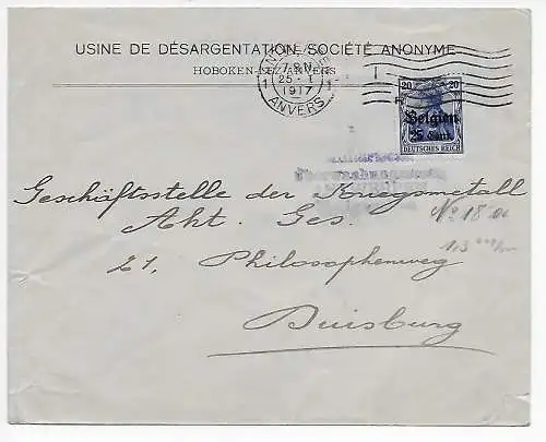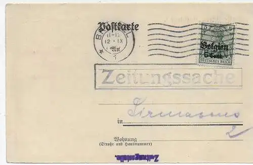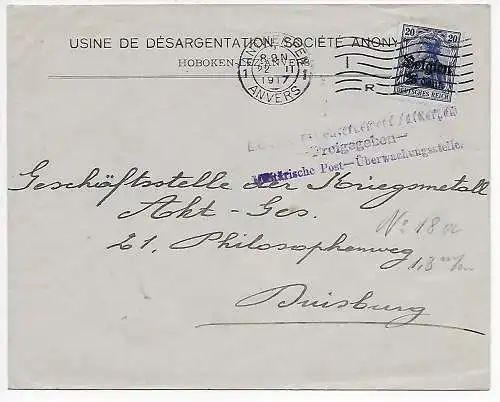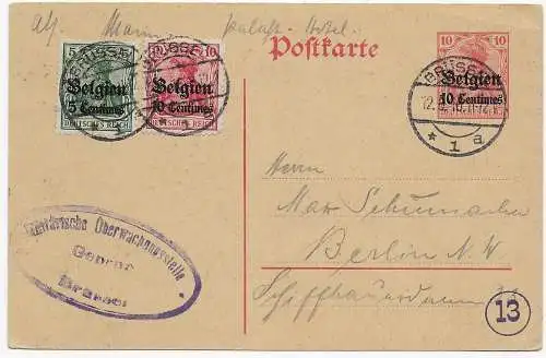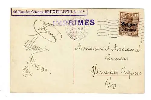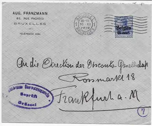 Instrument I. WK: Belgique Bruxelles, Postcensur 1917