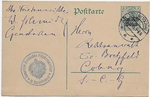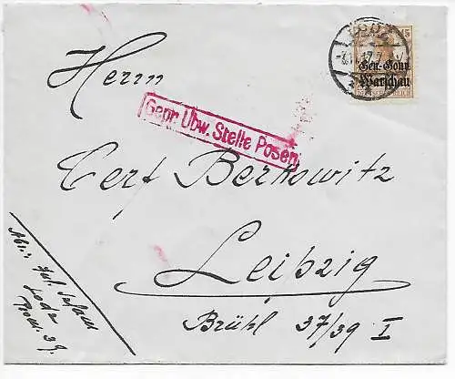 Inscription 1916 Varsovie - Bes. I. WK à Berlin, censure, zelocean