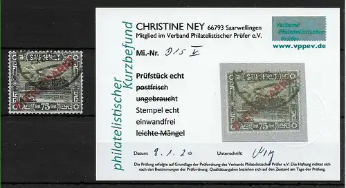 Sarsgebiet 73A Paysage 15 centimes sur 40 pf, cacheté