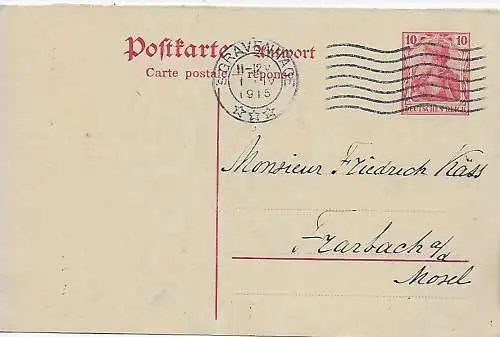 DR: Enregistrer Dülken selon Chemnitz, 1915 avec censure Crefeld