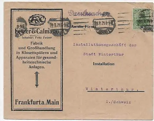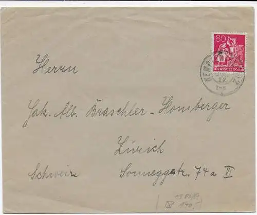 DR: Brief aus Hamburg 1921 nach Bern/Schweiz, EF MiNr. 188