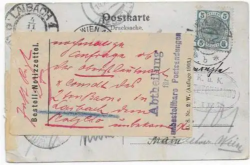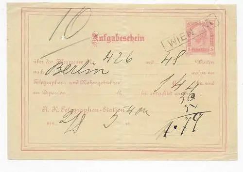 Carte téléphonique autrichienne - Carte vocale, 1889 Vienne