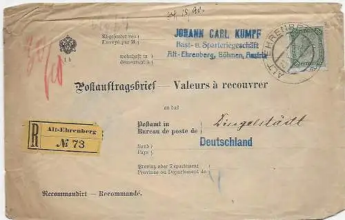 Autriche: retour d'information sur l'envoi de courriers de conduite inaccessibles 1909, Bodenbach