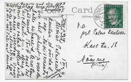 Estonie: 1934: Carte de félicitations P.V. Pärnu