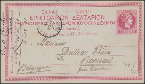 Carte postale Athènes 1895 vers Constantinople