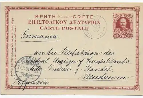 Grèce Carte postale P 5 Hermes 10 L. karmin de SYROS 1890 à Hambourg