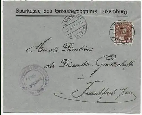Luxembourg - lettre recommandée, 1915 à la direction des douanes