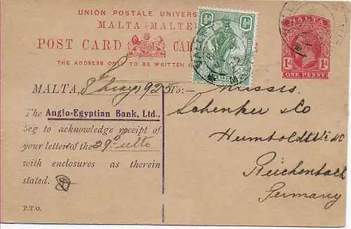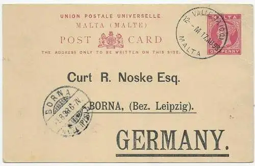 Malte: 1896: Post Card vers Neustadt/Saxe
