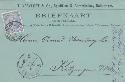 Vlaardingen, pair, 1865 to Würzburg, cat #5, railway cancel
