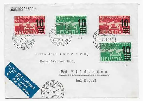 Suisse: 1937: Luzern comme une impression de réduction après le livret de déballage, partie..