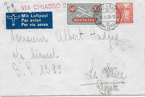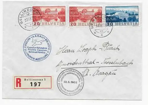 Lettre recommandé Aarau, Timbres nationaux Exposition 1938 avec vol spécial