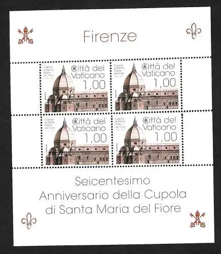 Vatican: 500e anniversaire de Andreas Palladiao #1625, bloc 31 frais de port