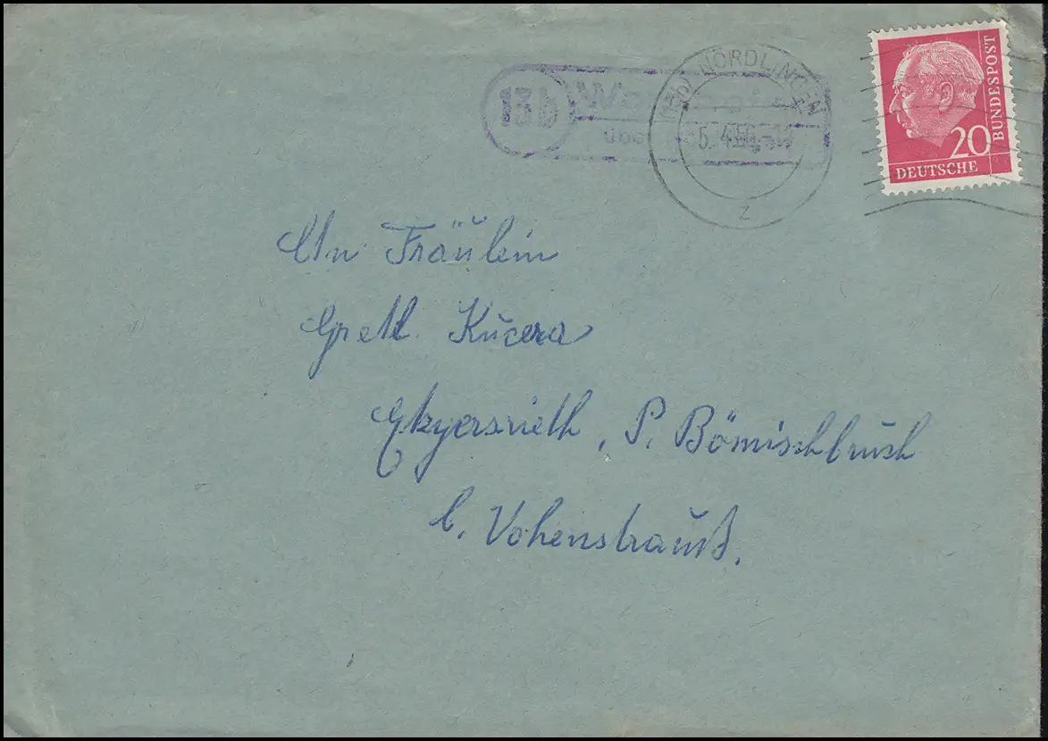 Timbres de poste de campagne Avertissements sur les NÖRDLINGEN 5.4.56 par télex