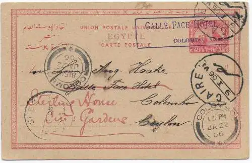 Carte double Egypte vers Helouan, Maître du gouvernement, Kuranstalt
