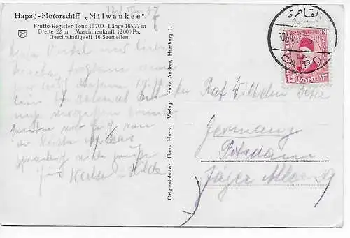 cover 1914 from Alexandria to Gössnitz/Germany