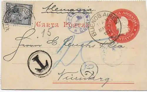 Argentine: 1901: Carte de Buenos Aires vers Neuburg