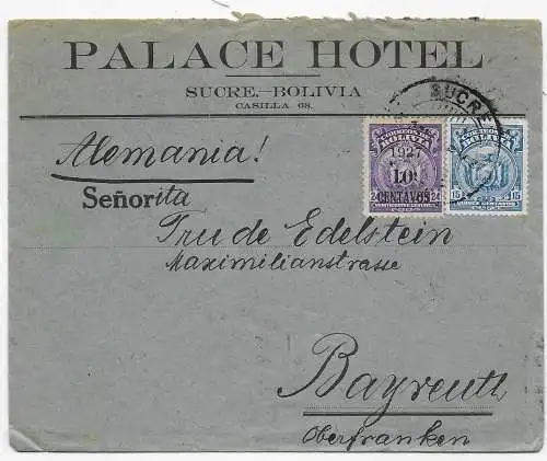 Bolivia/Bolivie: 1915: Cochabamba to Berlin/Germany