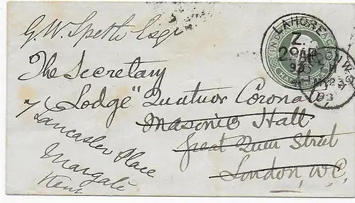 Lettre recommandée Sialkot après Bombay 1897