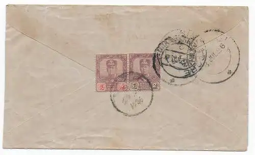 Straits Settlements R-Lettre de Singapour 3.6.1922 rs. MiF vers Kottaiyur/Inde
